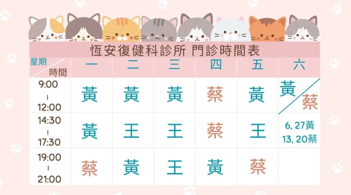 恆安復健科 永全診所 10/24(五) 10/25(六) 皆照常營業